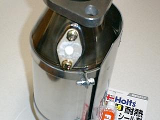 マフラー出口にネジ1本で小型のサイレンサーが 装着できるようにしました。 |