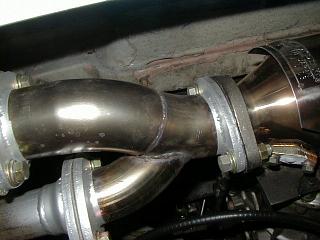 ステンレスエグゾーストをリメイク 86レビン用のスポーツ触媒をベースに出口60φ のステンレスマフラーをハッピーさんにてワンオフ で作成してもらいました。(SUS304) ブラケットを触媒に溶接してサイレンサーがあった 位置に装着。 サイレンサーがなくなって、なんだか音がヨーロッ パに似てきた感じがします。やっぱり同じロータス だからそうなるのでしょうか。 |