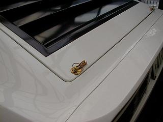 アルミ製のフードピン リアゲートのダンパーの効きが良かった頃 よく走行中にリアゲートが勝手に開いて しまう事件が多発し困ってたところ、ひら めいて装着に踏み切りました。 ボディに穴を開けるのは、気が引けますが 見映えも良くなるし。 結構気に入ってます。 |